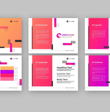 - Creación de manuales de marca con guías de uso del logo, tipografías, colores y estilos visuales.